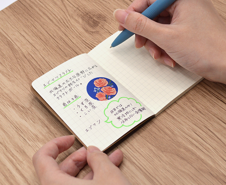 表紙に温かみのあるエゾマツクラフト紙を使用した、丈夫でナチュラルな風合いが魅力な、レトロおしゃれなポケットノートです。