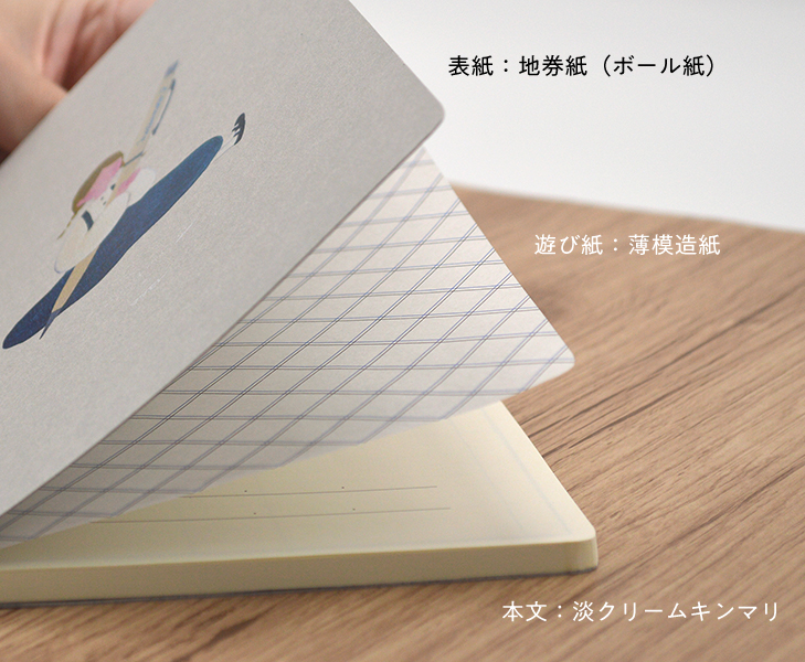 - 表紙:地券紙(ボール紙) 本文:淡クリームキンマリ 遊び紙:薄模造紙
