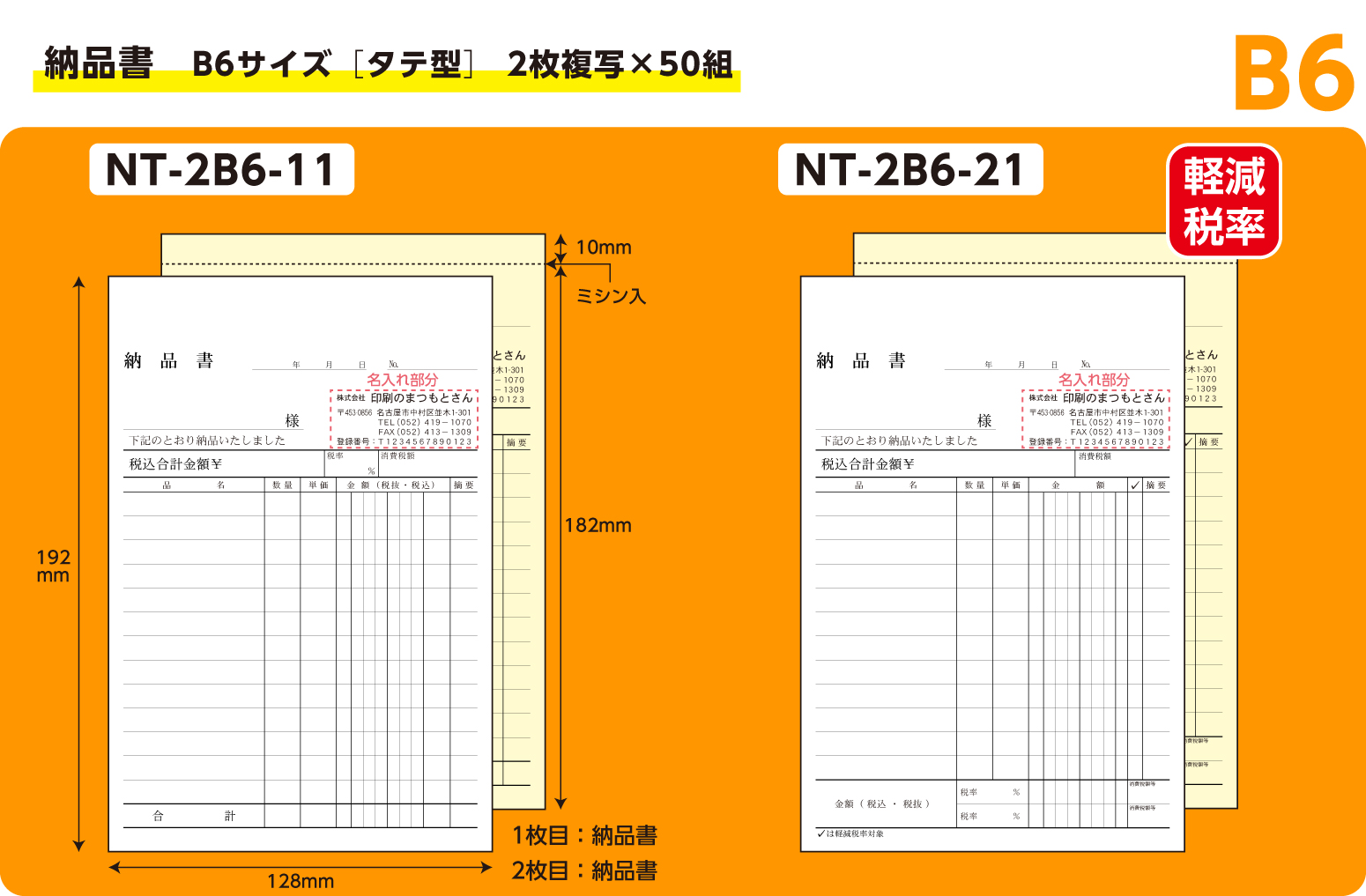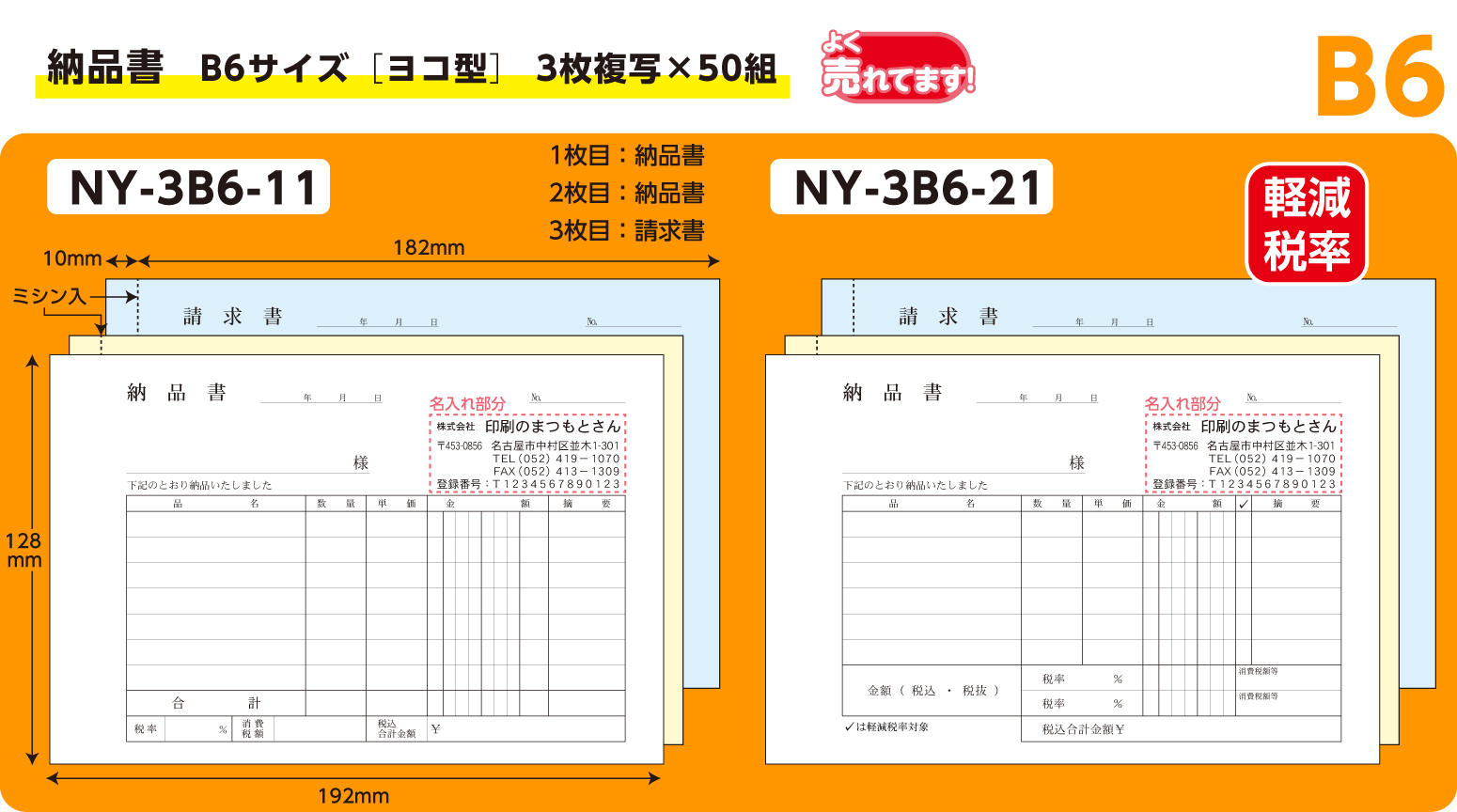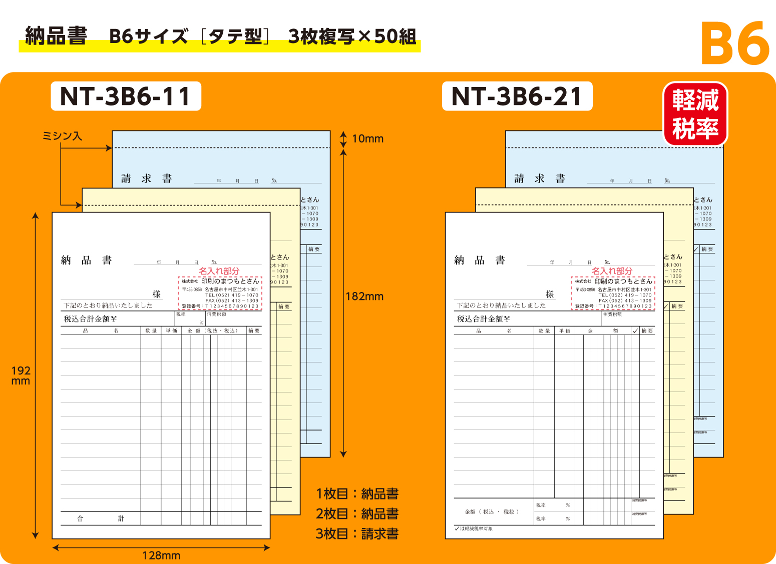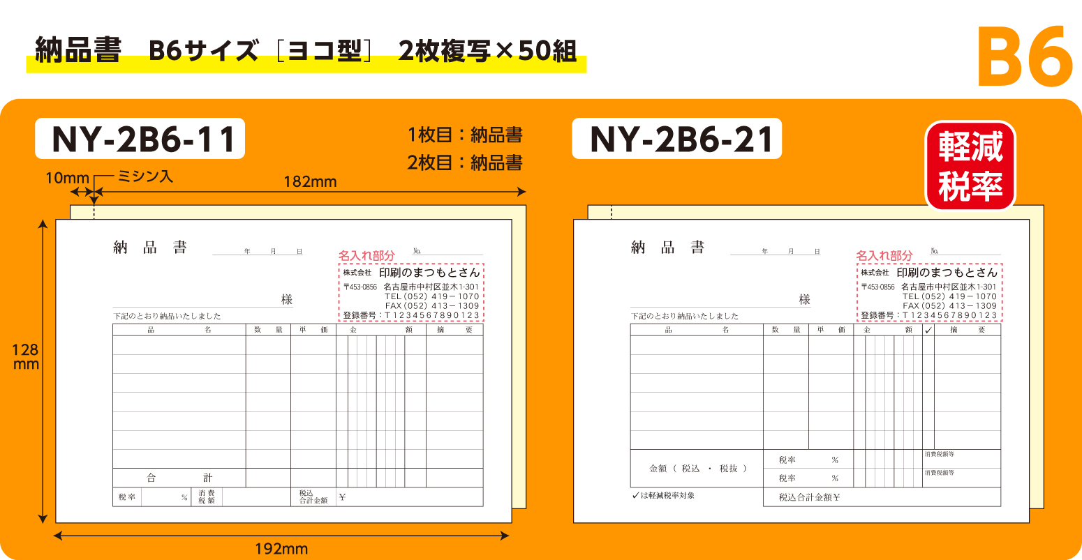 B6サイズ伝票